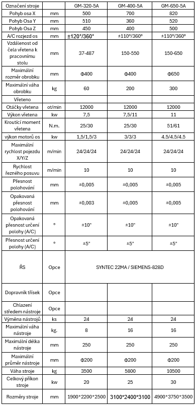 Níže naleznete přehled 5osých obráběcích center z naší nabídky.Pro cenovou nabídku nebo upřesnění konfigurace stroje nás neváhejte kontaktovat.