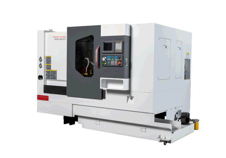 Glorymaq GM-46HY je moderní CNC soustruh se šikmým ložem, poháněnými nástroji a řízenou osou Y, určený pro komplexní obrábění rotačních dílů. Stroj umožňuje kombinaci soustružení, frézování, vrtání a závitování v jednom pracovním cyklu, čímž výrazně zkracuje výrobní časy a zvyšuje přesnost hotových dílů.