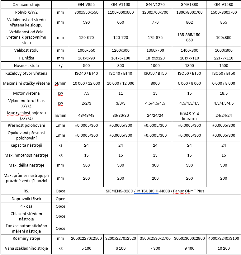 Níže uvádíme přehled základních variant vertikálních obráběcích center.Konfiguraci strojů je možné upravit dle konkrétních požadavků zákazníka.