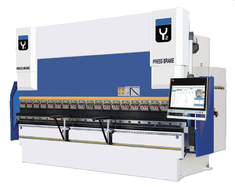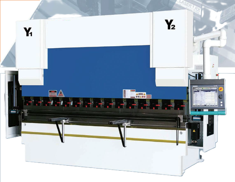 Osy: Y1/Y2 (synchronní), X/R zadní doraz (přesnost ±0,01 mm), volitelně víceo-osé.