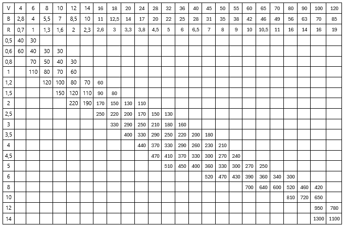 Tento graf je vypočítán podle plechu s pevností v tahu σb = 450 N/mm² a délkou L=1m, sílu lze získat podle